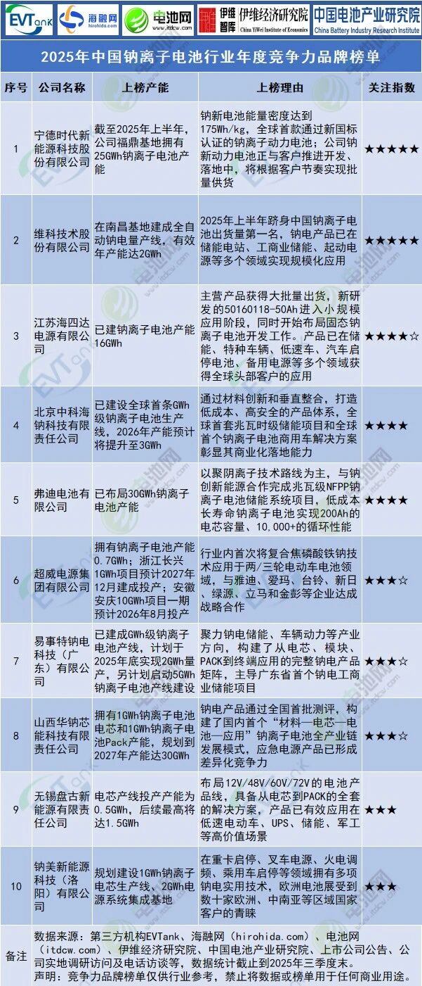 在鈉離子電池領(lǐng)域,維科技術(shù)股份有限公司憑借強(qiáng)大的綜合實(shí)力,榮列“2025年中國(guó)鈉離子電池行業(yè)年度競(jìng)爭(zhēng)力品牌”第二位,僅次于寧德時(shí)代。
